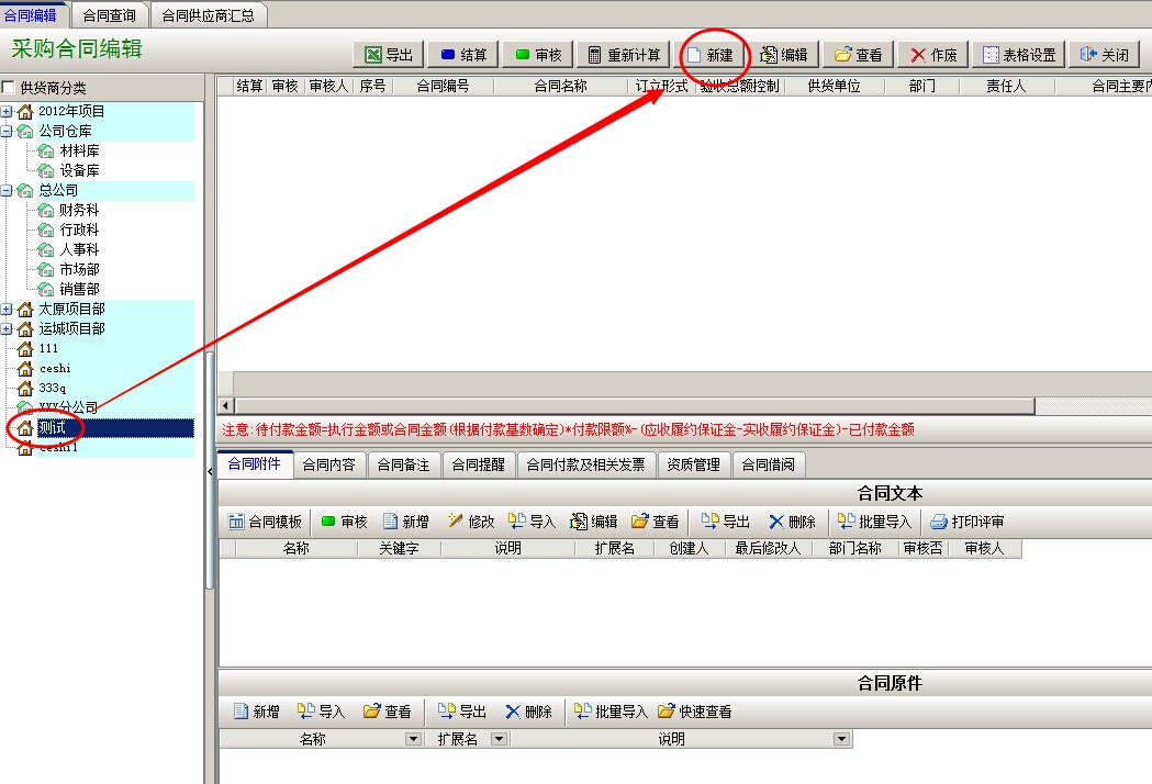 合同建立之后,點(diǎn)擊合同內(nèi)容,導(dǎo)入或是新增,錄入合同內(nèi)容。