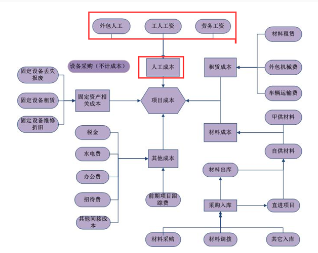 人工成本,可分為員工工資、勞務(wù)工資、分包費(fèi)三個(gè)部分。