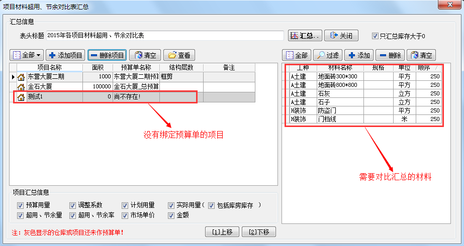 預(yù)算單材料名稱為基準(zhǔn)的,而且預(yù)算單里區(qū)分了工種,所以需要將“匯總時(shí)區(qū)分材料工種”打鉤