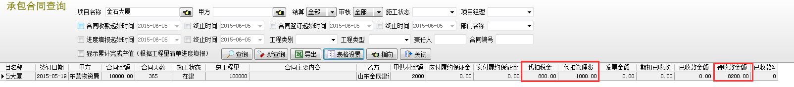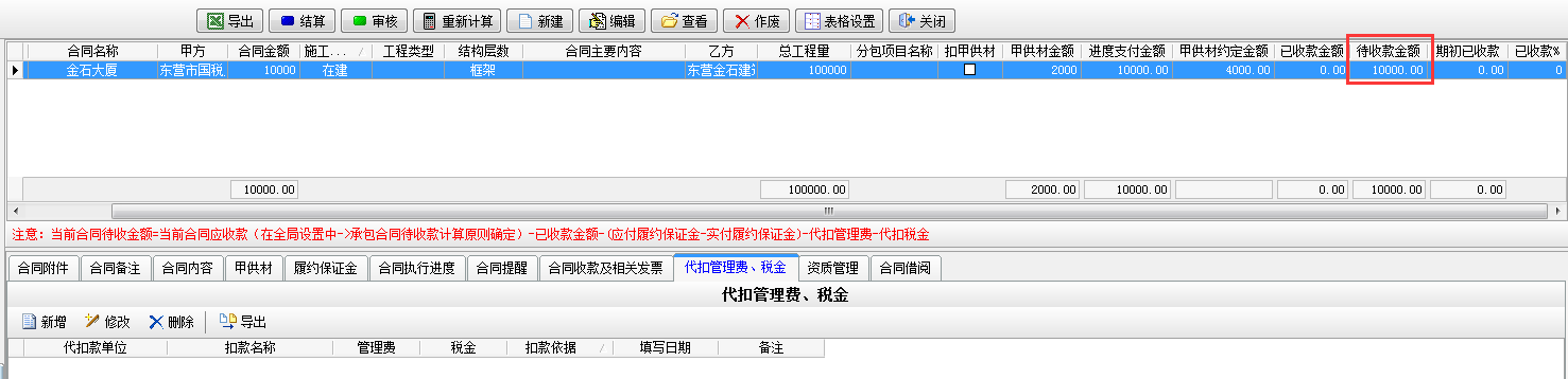 填寫完成【代扣管理費(fèi)稅金】模塊時(shí)待收款金額