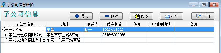 備注:【子公司信息維護(hù)】可以設(shè)置集團(tuán)公司下的子公司也以設(shè)置借資質(zhì)單位。