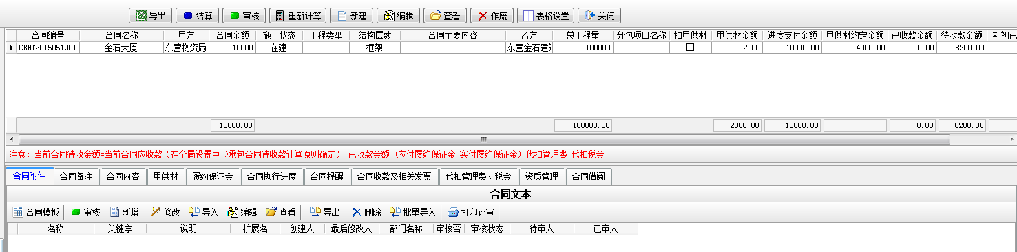 在工程項(xiàng)目資質(zhì)掛靠管理中乙方B借用乙方A的資質(zhì),乙方A需要扣除乙方B管理費(fèi),如果需要乙方A代開發(fā)票還需要扣除稅金。在分包合同中[扣繳費(fèi)用]模塊下操作,如下圖: