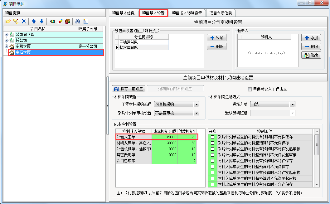 在新建項目時設置成本控制金額和付款控制比例。具體設置方法【工程管理】模塊?【項目維護】項目