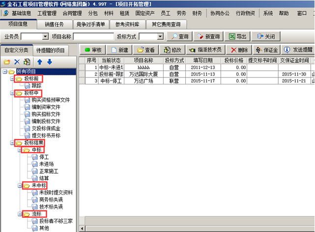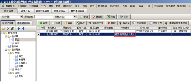 也可根據(jù)投標(biāo)方式、業(yè)務(wù)員、項(xiàng)目狀態(tài)查詢。