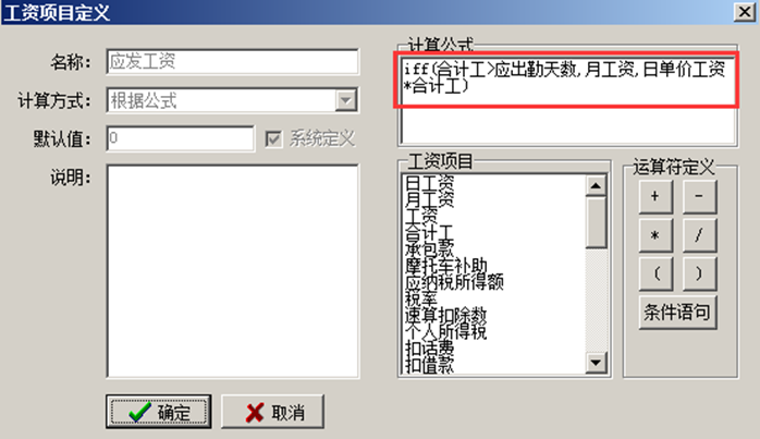 二、工程管理軟件中應發(fā)工資如何定義公式。