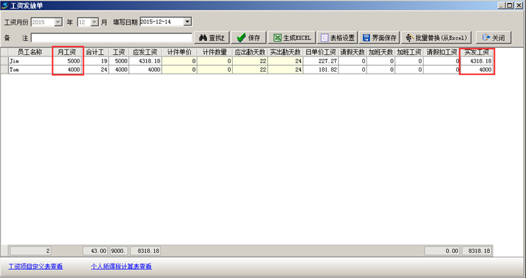 則按照工資項目定義,生工工資表如圖: