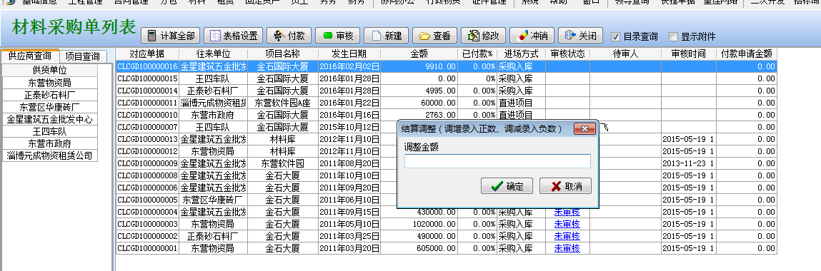工程項(xiàng)目管理軟件結(jié)算調(diào)整