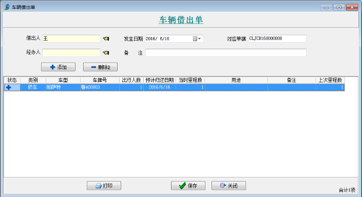 主要包括【車輛借出單】【車輛里程單】【車輛歸還單】