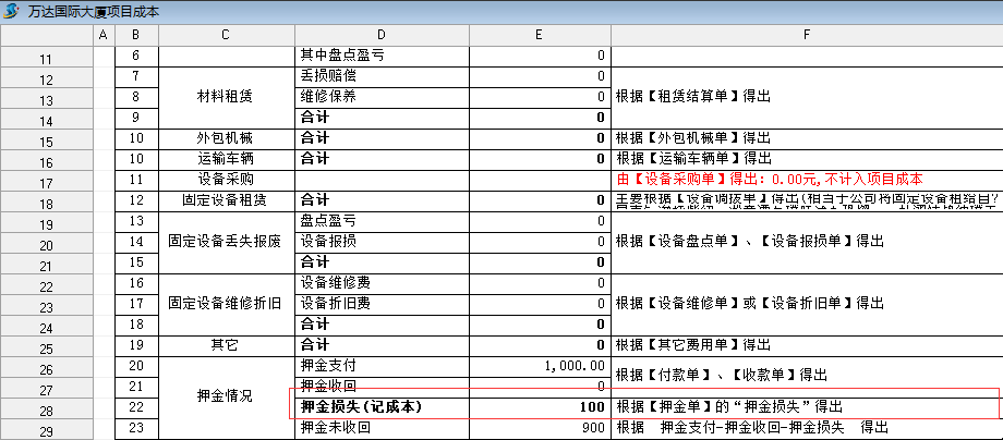押金損失是計入成本的,可根據(jù)【項目成本利潤】模塊查詢得出(下圖)