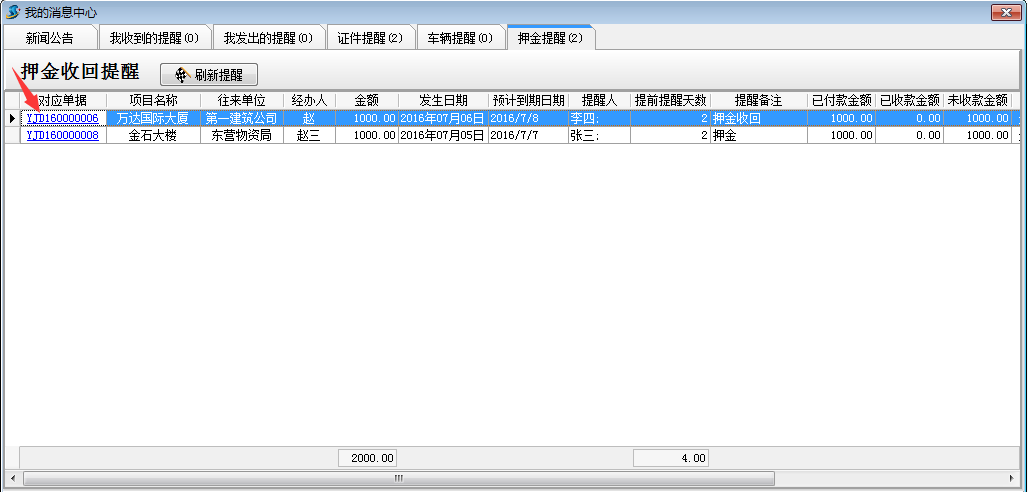 一、建立押金單、押金提醒(導(dǎo)入附件)