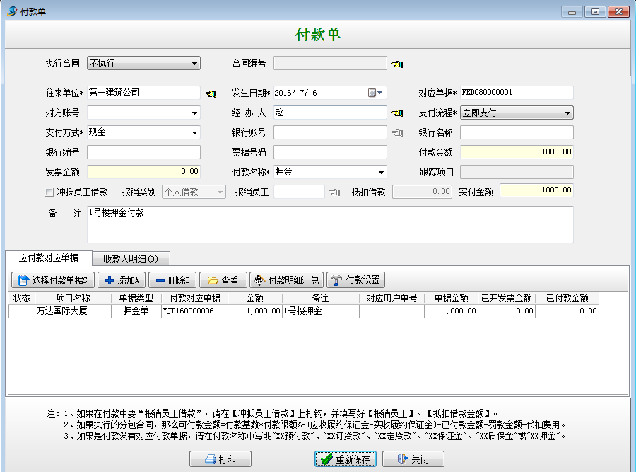 1.建立押金單、押金提醒(導(dǎo)入附件)->審核確認(支持多級審核)