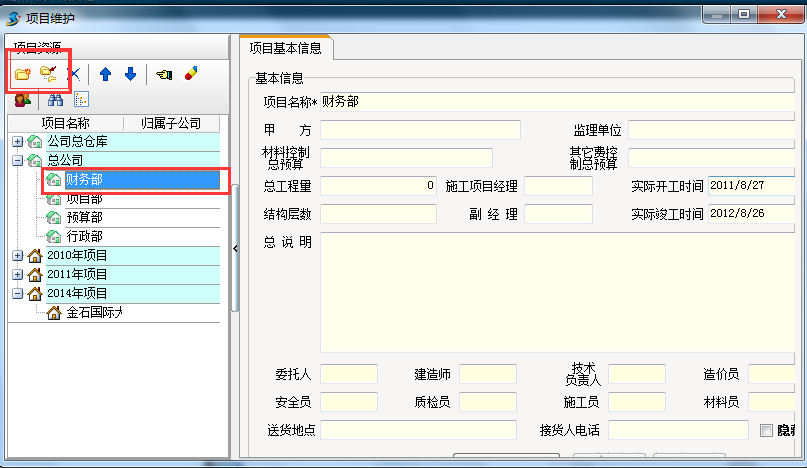 1.因資金在金石工程項目管理軟件中也是區(qū)分項目的,所以在項目維護中新建個財務(wù)部節(jié)點