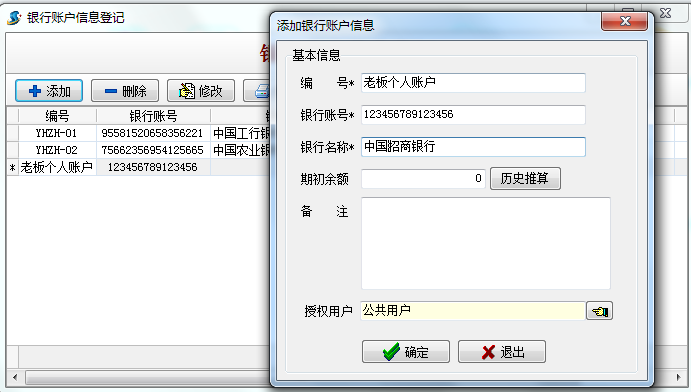 2.用老板個人賬戶新建個銀行帳號,期初余額為0(因為不需要記錄老板私人帳號余額)