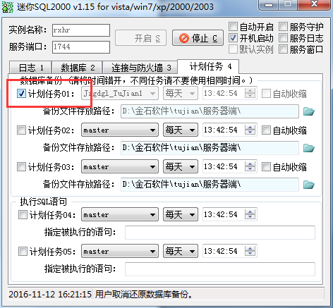 2、自動(dòng)備份:選擇計(jì)劃任務(wù)→添加備份的數(shù)據(jù)庫(kù)和日期