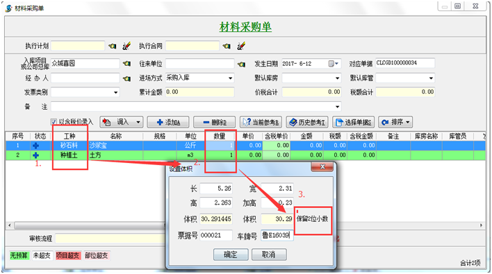 工程項目管理軟件對于工地來的土方或砂石料以車的長寬高來算體積量,我可以以下方法處理。