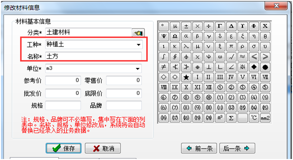 在材料維護中維護好相應材料的工種名稱中帶有“砂石料”或“種植土”三個字