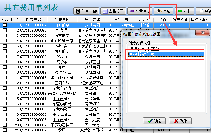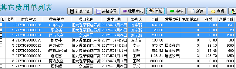 在工程項目管理軟件中如果某個員工在多個項目任職,又有多個往來單位都產(chǎn)生業(yè)務往來,都要進行報銷付款(沒有對應合同的前提下),按住ctrl鍵選擇待付款的單據(jù)(需單據(jù)的經(jīng)辦人是相同的)