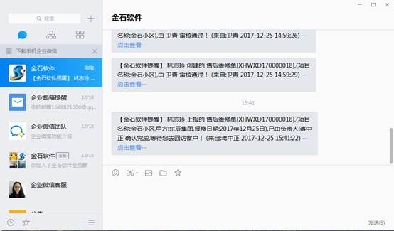 此時負(fù)責(zé)人會收到微信提醒,提醒其對該項目進(jìn)行跟蹤及維修情況的必要登記,如下圖