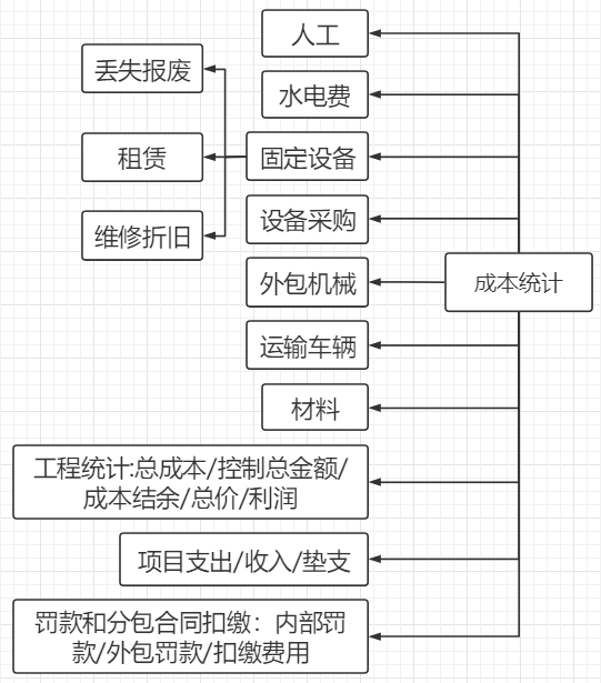 利用項目管理系統(tǒng)可以很好的解決數(shù)據(jù)統(tǒng)計、成本歸納這項管理難題。金石項目管理軟件可以自動歸納項目的相關數(shù)據(jù),集合于一體,形成實時可見、隨時變更的項目成本統(tǒng)計表,系統(tǒng)涉及的數(shù)據(jù)如下: