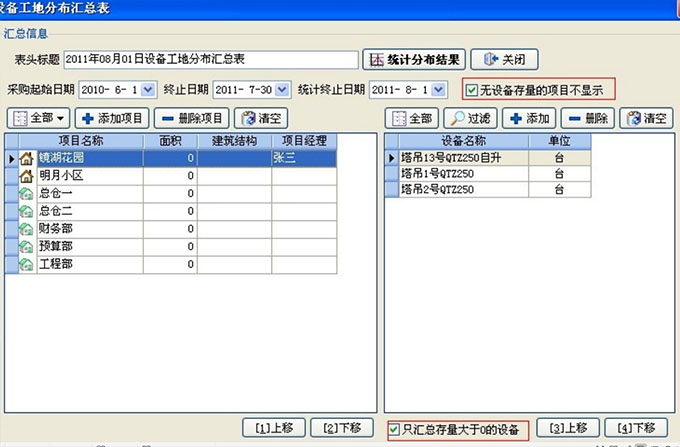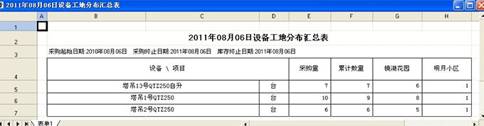點(diǎn)擊上圖統(tǒng)計(jì)分布結(jié)果,即可出現(xiàn)詳細(xì)信息,設(shè)備各個(gè)工地的分布情況(包括新采購(gòu)和設(shè)備累計(jì)數(shù)量)。