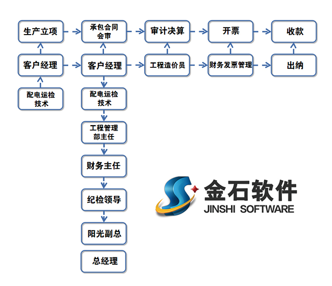 金石軟件工程師通過陽光電力公司相關(guān)領(lǐng)導(dǎo)的詳細(xì)溝通后,結(jié)合實(shí)際情況,對陽光電力管理流程進(jìn)行了全面的梳理,操作方案流程如下: