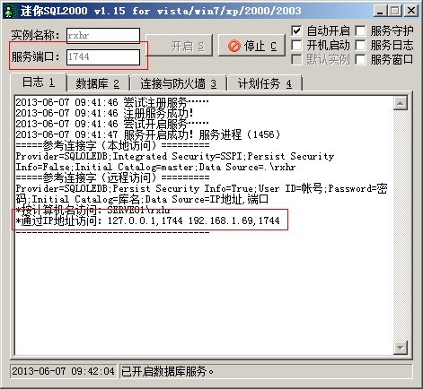 數(shù)據(jù)庫端口1744和智能卡端口3001。