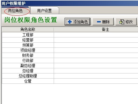 打開用戶權(quán)限設(shè)置后,首先設(shè)置【權(quán)限角色】,下圖所示: