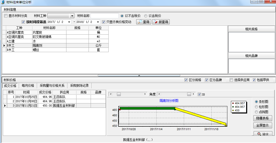 供應(yīng)商信息庫、材料設(shè)備信息數(shù)據(jù)庫和價格信息數(shù)據(jù)庫是公司不可或缺的資源。然而,如何利用大量的信息來降低采購成本,反映采購部門的績效,是每個采購主管需要解決的一個緊迫問題。根據(jù)供應(yīng)商在軟件中的查詢、材料交易價格分析圖、如果采購合同未到達,請在一定時間內(nèi)檢查材料價格調(diào)整和采購合同執(zhí)行情況,并實時提示。