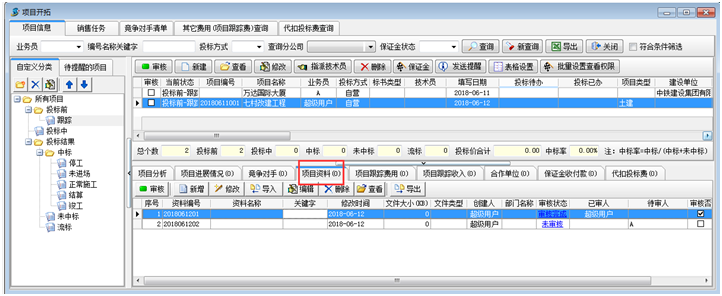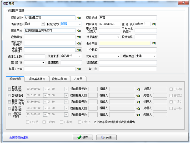 項(xiàng)目狀態(tài)建好之后,有需要投標(biāo)的項(xiàng)目創(chuàng)建項(xiàng)目開(kāi)拓信息。