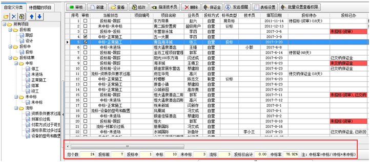 隨著投標(biāo)的進(jìn)度右鍵可以設(shè)置投標(biāo)狀態(tài)