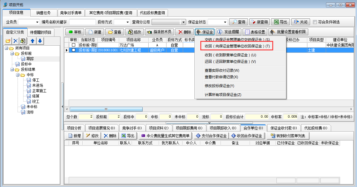 項(xiàng)目開拓中查詢投標(biāo)保證金