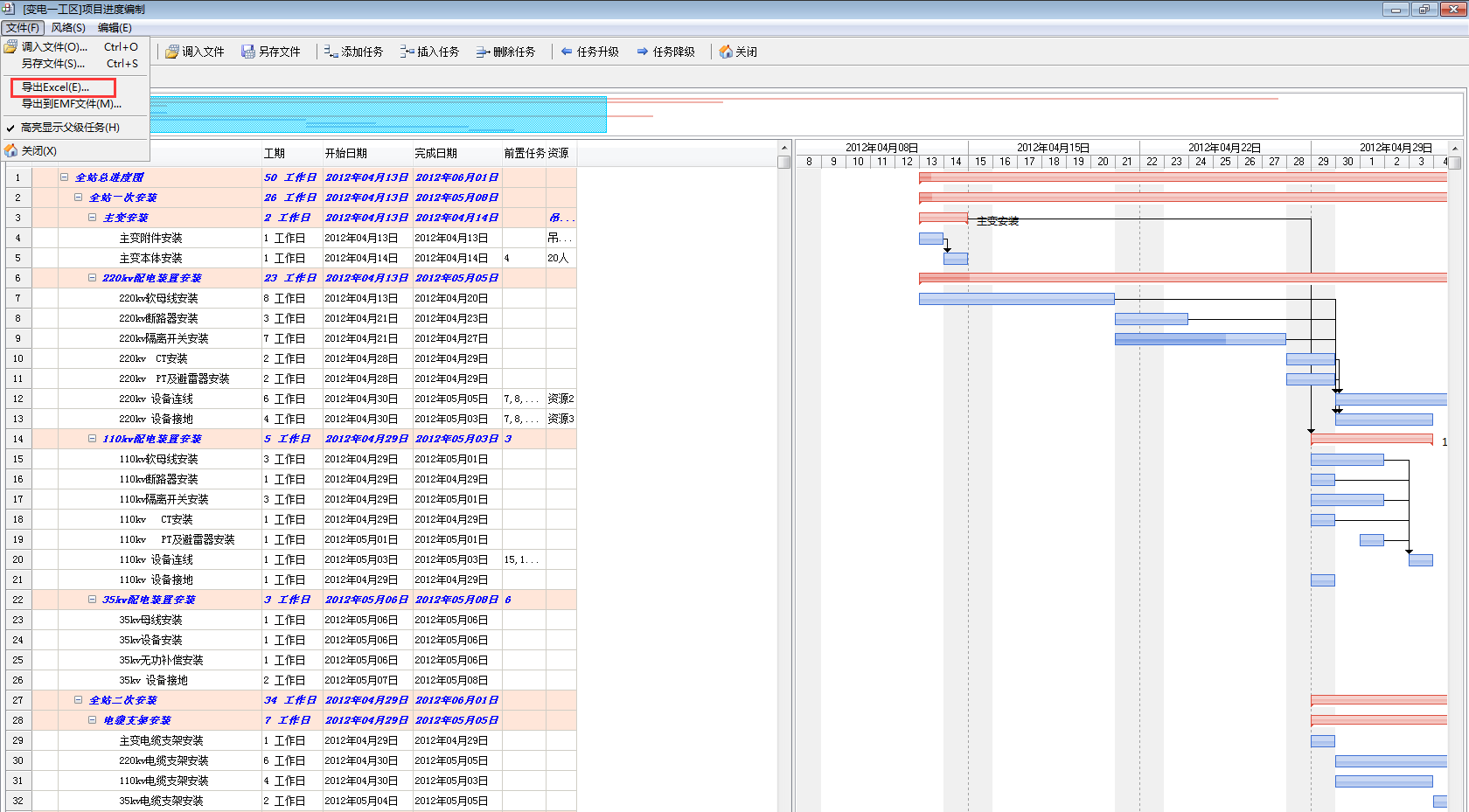 1.來自Project軟件導(dǎo)出的excel導(dǎo)入方法。