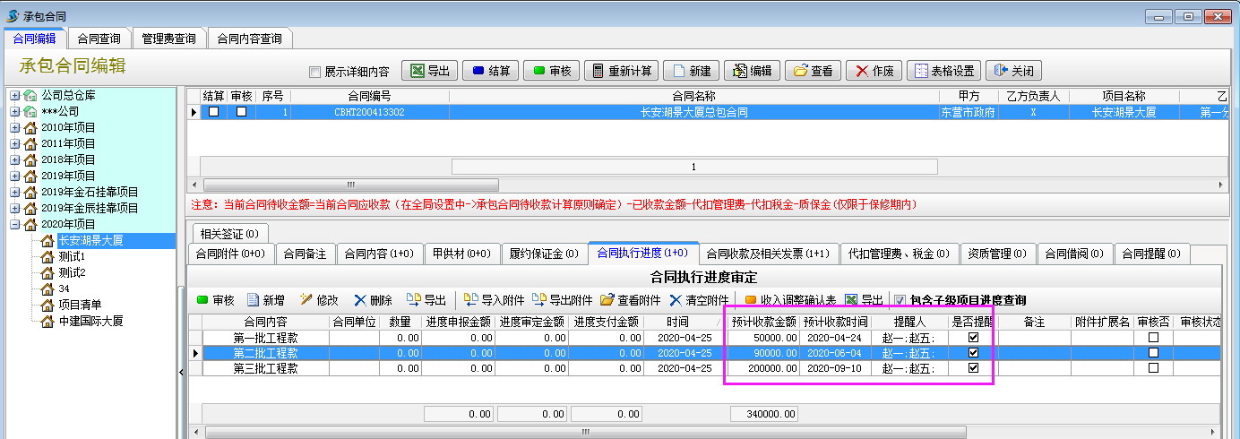承包合同回款提醒
