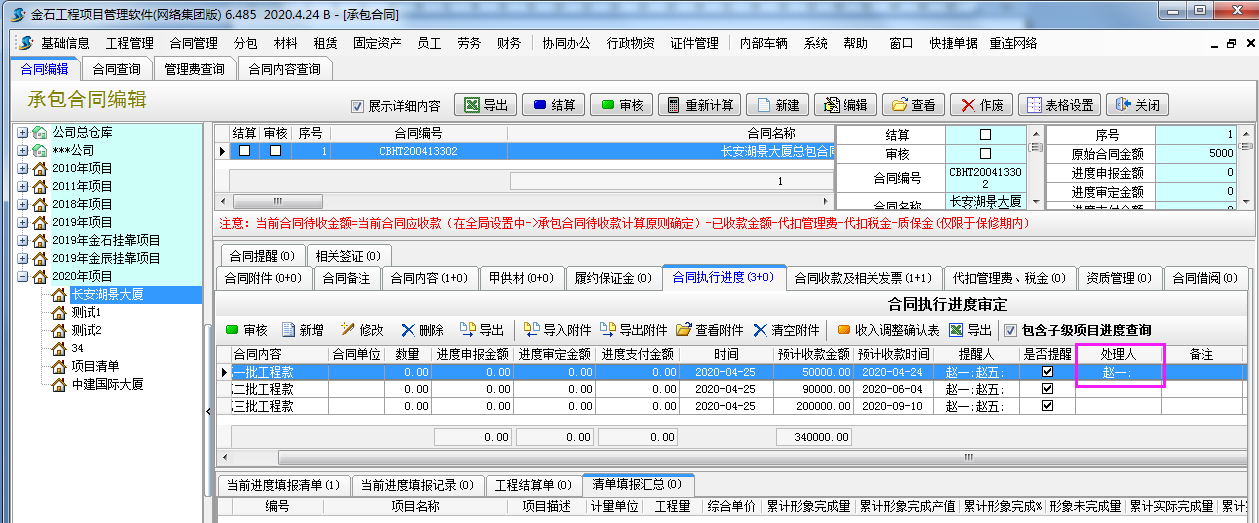 應(yīng)用場(chǎng)景:施工企業(yè)跟甲方簽訂承包合同時(shí)一般會(huì)約定好付款周期及付款比例,金石軟件專(zhuān)門(mén)開(kāi)發(fā)了設(shè)置收款計(jì)劃模塊,收款計(jì)劃到期后系統(tǒng)會(huì)發(fā)送提醒給相關(guān)提醒人。