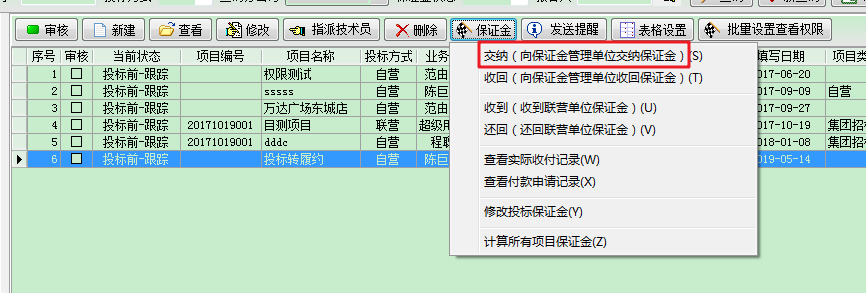 1、先說(shuō)第一種情況。項(xiàng)目開(kāi)拓中,如下圖所示,做保證金的繳納。