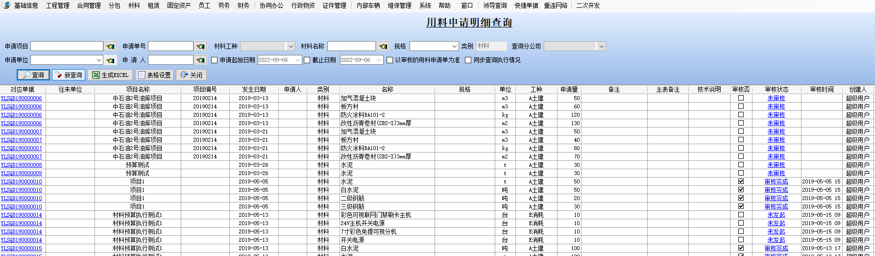 金石工程管理軟件材料管理模塊新增:用料申請(qǐng)明細(xì)查詢