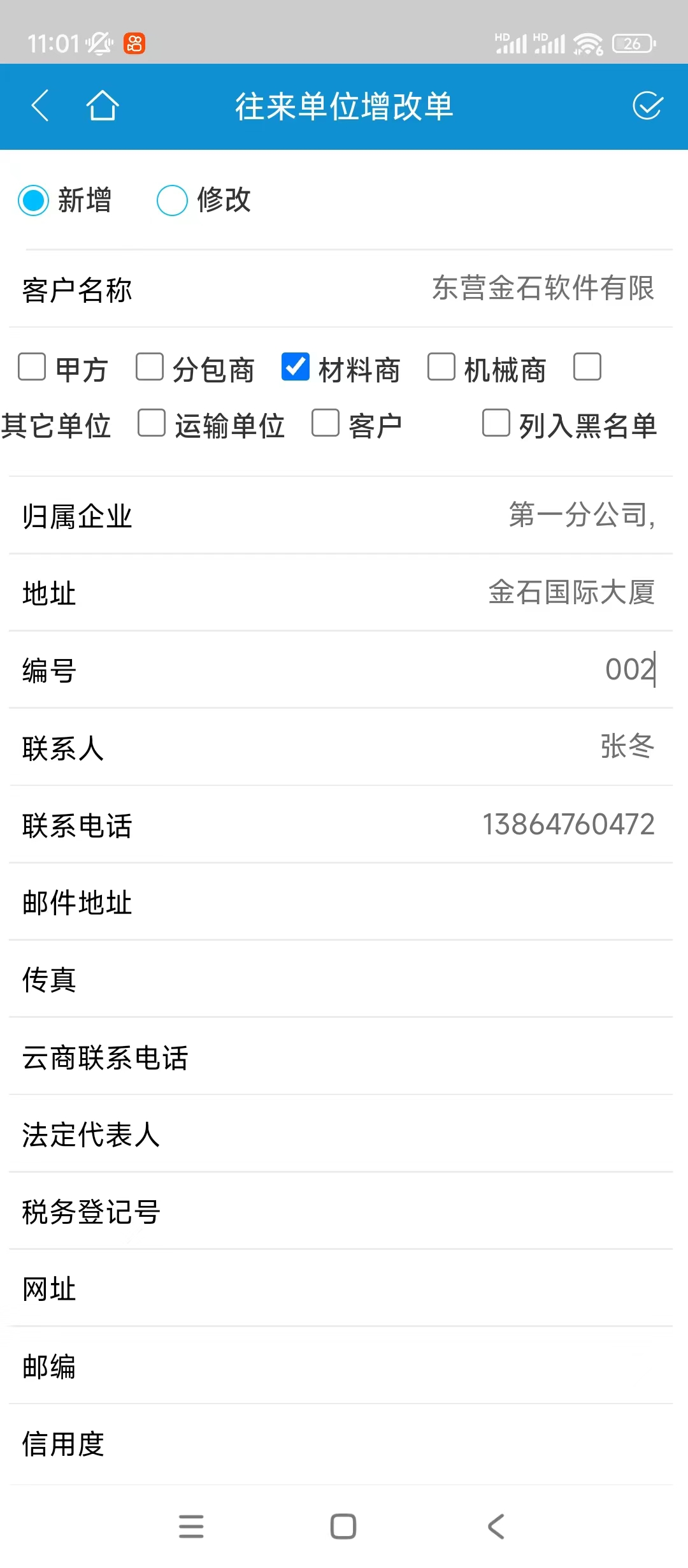 同樣手機(jī)功能中也可以填寫或者審核往來單位增改單
