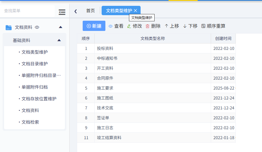 常用文檔資料的類型,比如投標(biāo)資料、中標(biāo)通知書、開工資料等,如下圖