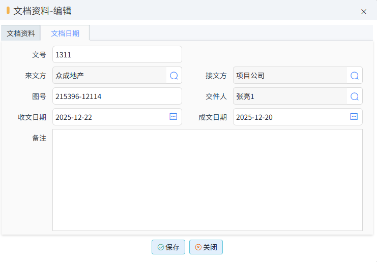 文檔日期中,還可以輸入,當(dāng)前文檔文號,來文方和接收方等。