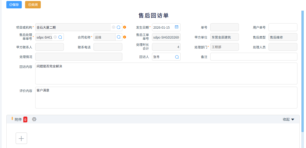 本模塊是專門針對施工企業(yè)工程結(jié)束后進行售后維?;蛘呤┕て髽I(yè)接售后運維項目所設(shè)立的模塊。可以管理巡檢、售后工單、技術(shù)人員派單、現(xiàn)場添加維修記錄、客戶售后回訪等功能,并能關(guān)聯(lián)工程結(jié)算或者其它收入結(jié)算,進行收款。