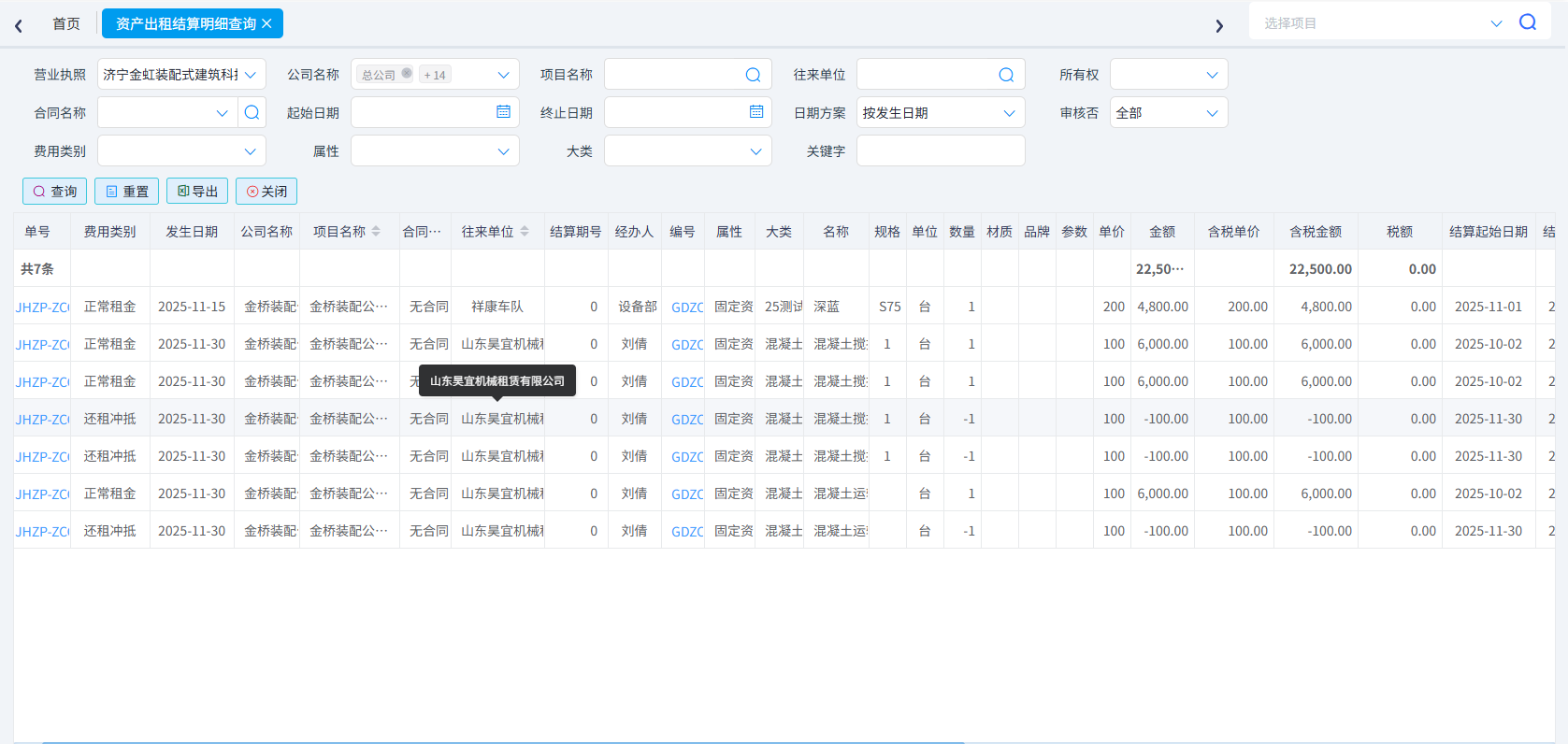 資產(chǎn)出租結算是企業(yè)在租期結束時,與承租方完成租金、押金及相關費用(如維修費、違約金等)的核對、支付與清算的流程,明確計租方式和租賃起始、截止日期可自動生成計算租費。