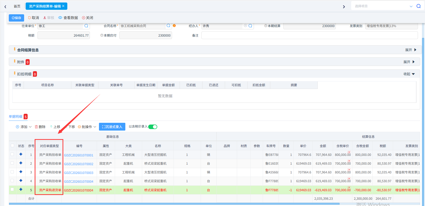 資產(chǎn)采購結算是完成資產(chǎn)交易閉環(huán)的核心環(huán)節(jié),通過核對合同條款、資產(chǎn)驗收及發(fā)票等文件,確保資金支付與采購行為嚴格匹配。結算過程中可以添加資產(chǎn)采購驗收單與資產(chǎn)采購退貨單內(nèi)容