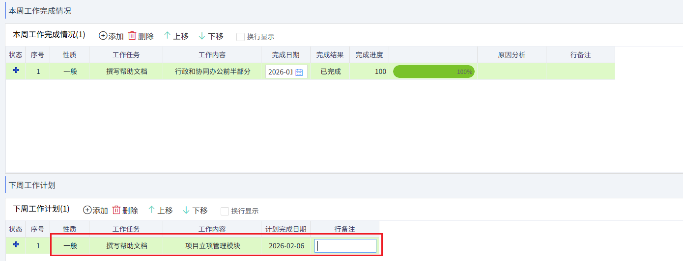 本周工作完成后,可以添加下周工作計(jì)劃,如下圖所示: