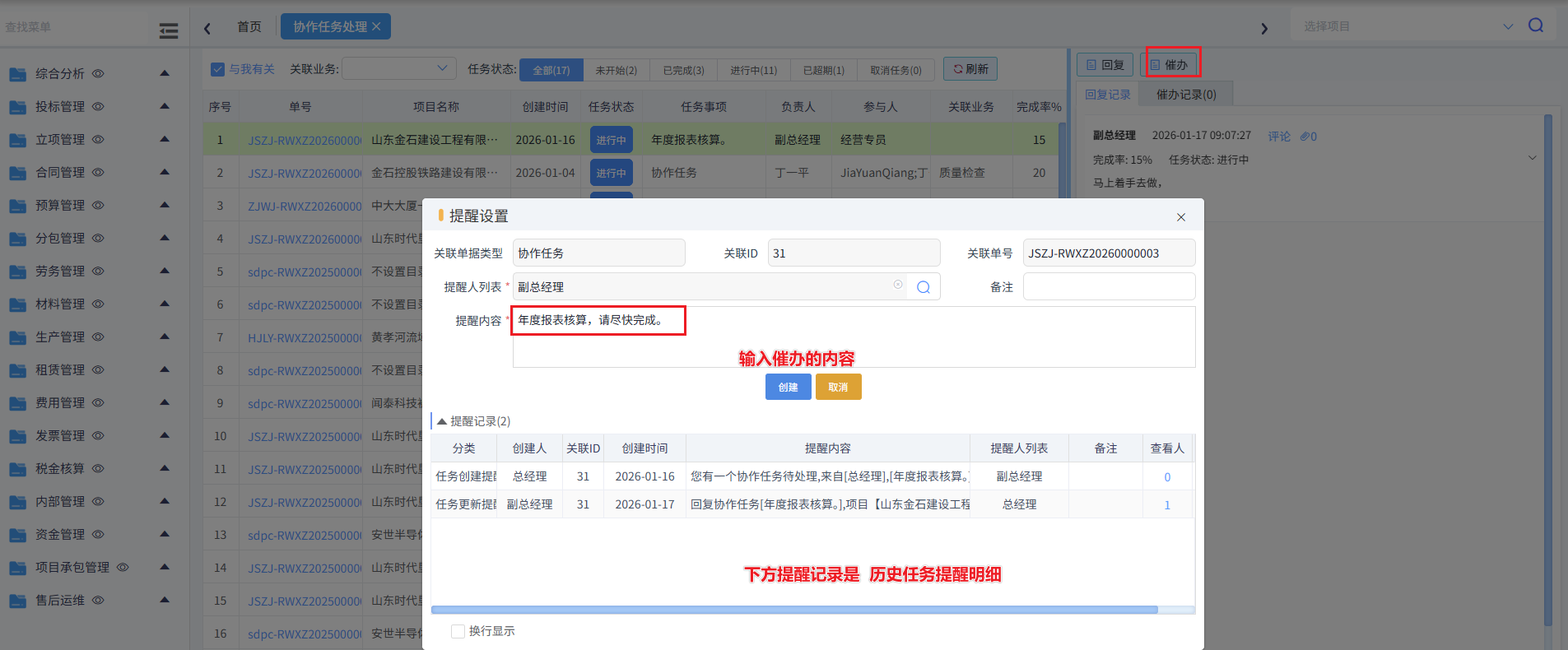 此時(shí)任務(wù)發(fā)起人,也可以對(duì)此任務(wù)進(jìn)行催辦,如下圖所示: