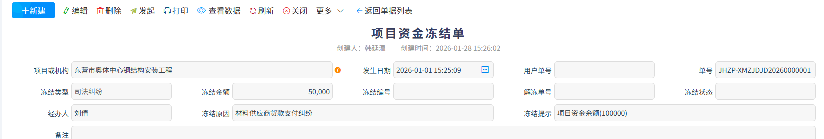 當(dāng)項(xiàng)目出現(xiàn)欠薪、糾紛、訴訟等風(fēng)險(xiǎn),或需專項(xiàng)留存資金時(shí),通過(guò)凍結(jié)單鎖定資金,防止挪用、轉(zhuǎn)移,保障資金安全與后續(xù)履約、糾紛解決或案件處理。