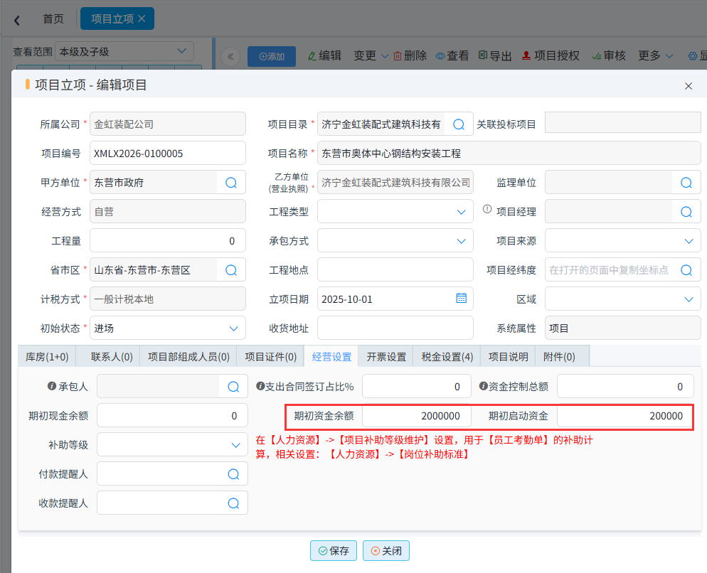 (1)項(xiàng)目?jī)?nèi)部資金期初設(shè)置
