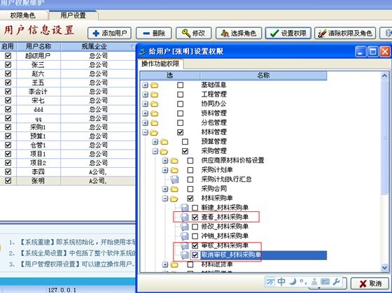用戶:張明 權(quán)限如下:
