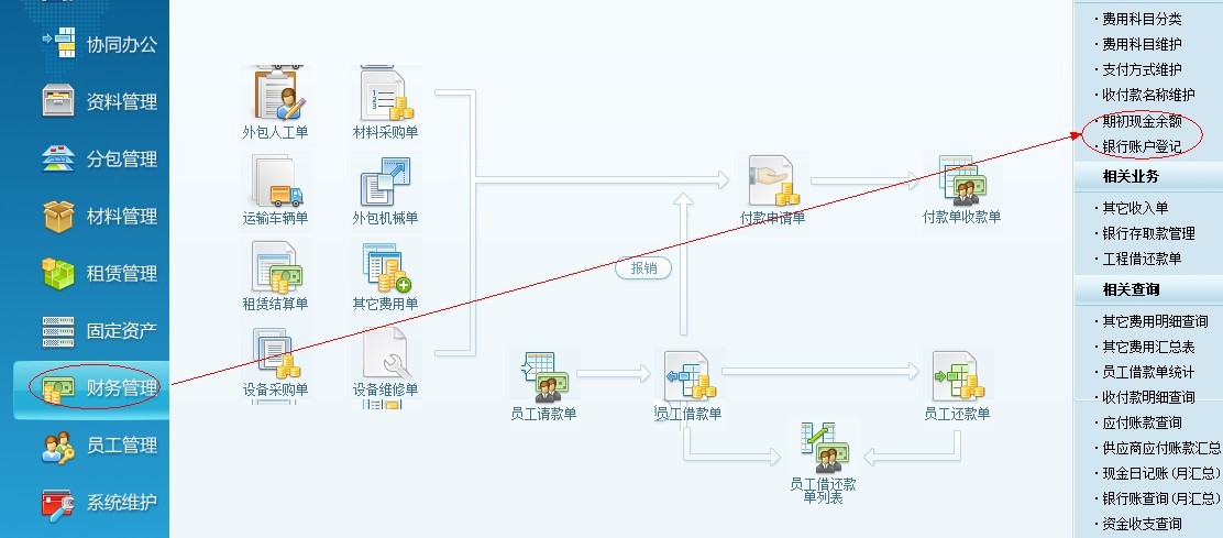 財務(wù)現(xiàn)金賬和銀行賬的的期初錄入,是在財務(wù)模塊中的期初現(xiàn)金余額、銀行賬戶登記來錄入。如下圖: