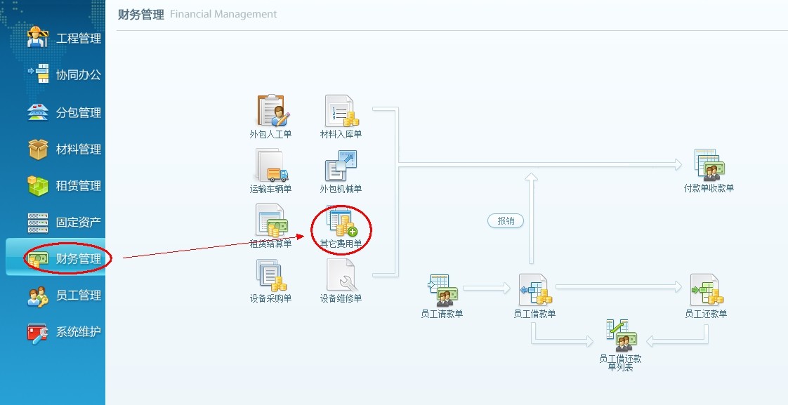 投標(biāo)項(xiàng)目的費(fèi)用錄入流程:導(dǎo)航欄財(cái)務(wù)管理---其它費(fèi)用單---付款單