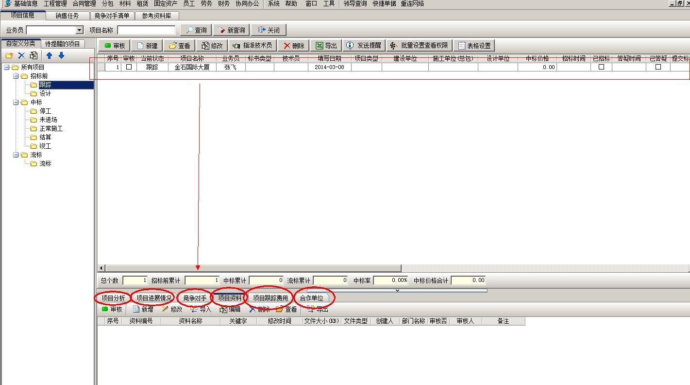 項(xiàng)目開(kāi)拓建立之后,審核,然后可以錄入投標(biāo)項(xiàng)目的一些基本資料